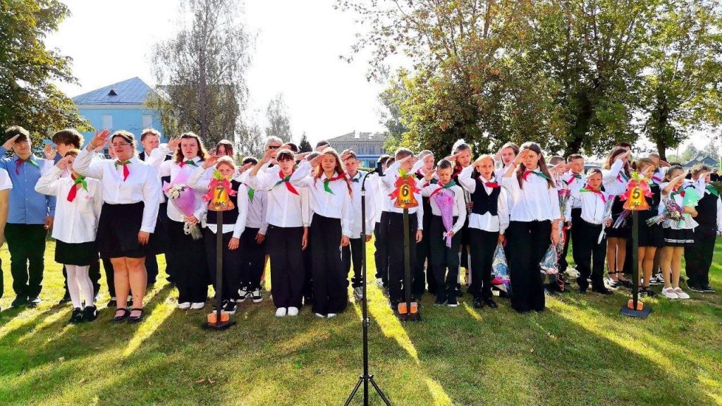 Нарядные ученики и ученицы с пестрыми букетами цветов, учителя и родители заполнили школьный двор, чтобы отметить начало нового учебного года. Праздник прошёл в торжественной обстановке.
