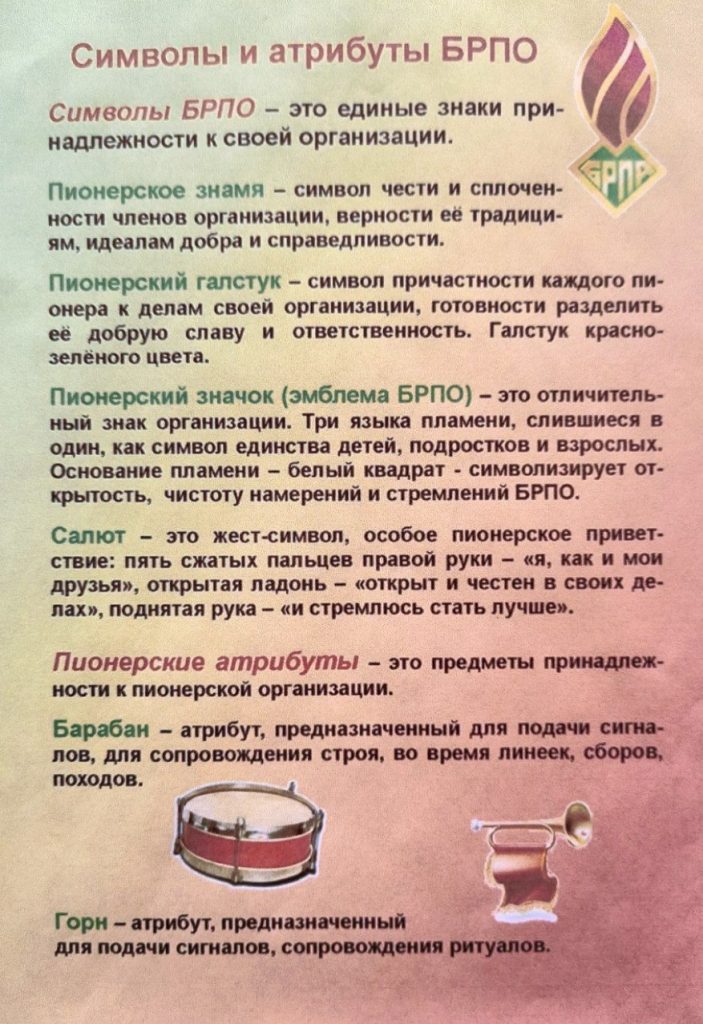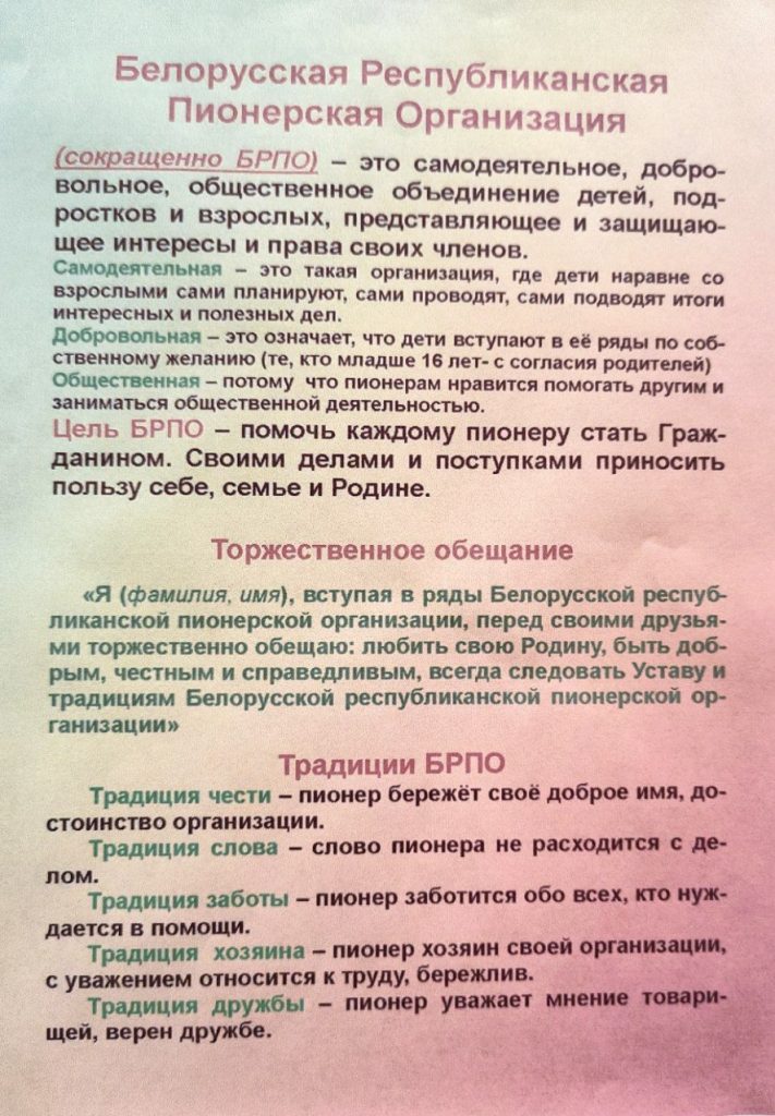 Общественное объединение «Белорусская республиканская пионерская организации» одна из самых массовых детских объединений, для детей и подростков от 7 до 14 лет, в нашей стране. С каждым днем наша организация пополняется активными, инициативными, креативными, и талантливыми ребятами. Ссылка на сайт Общественного объединения «Белорусская республиканская пионерская организация» — https://brpo.by/